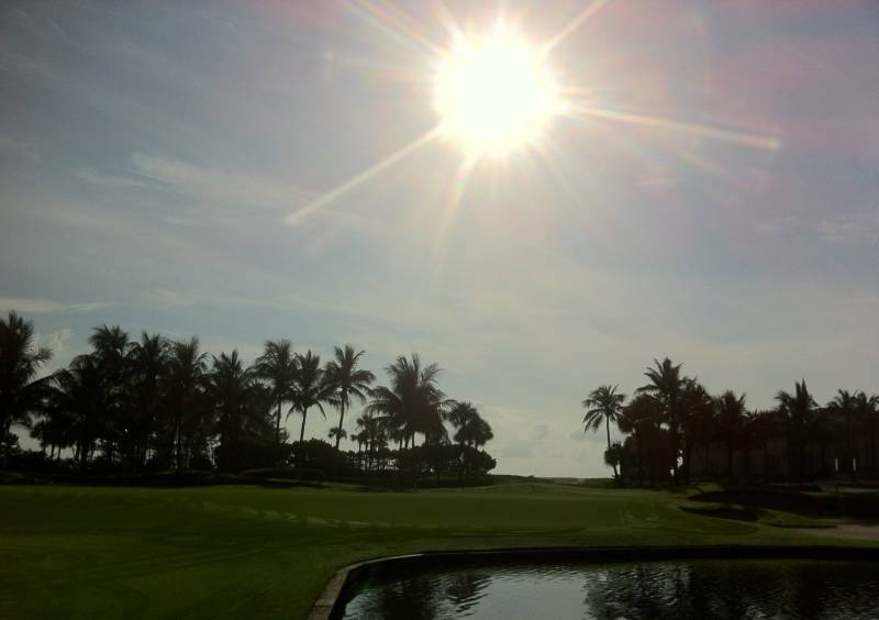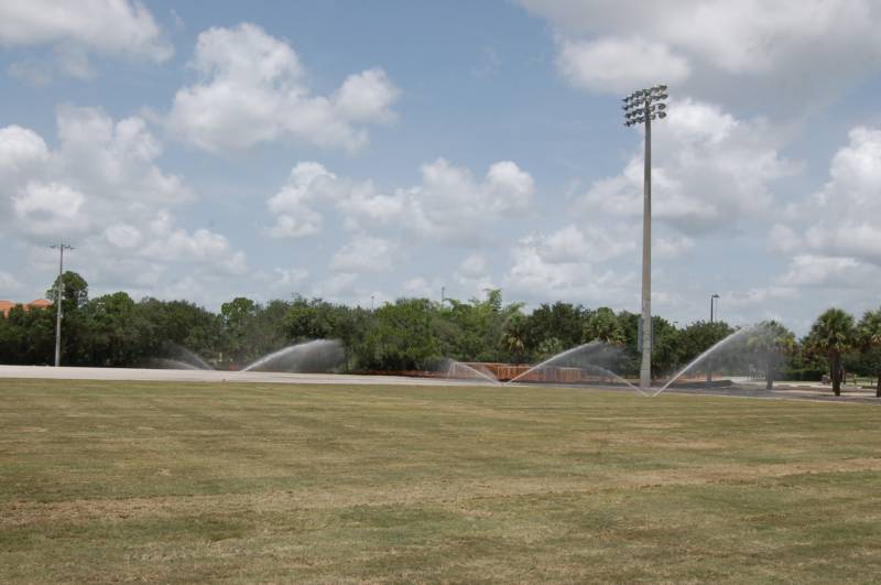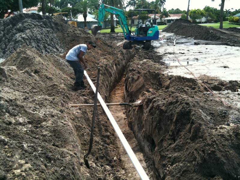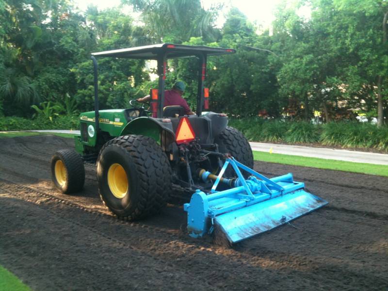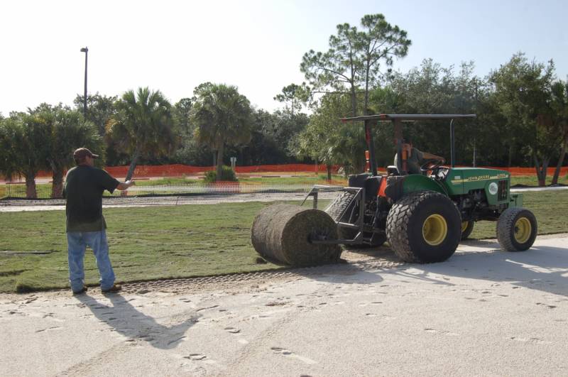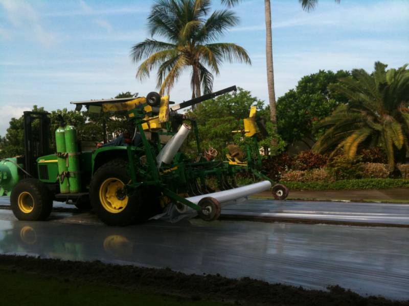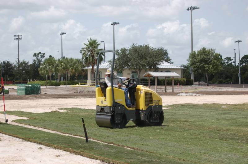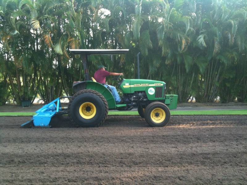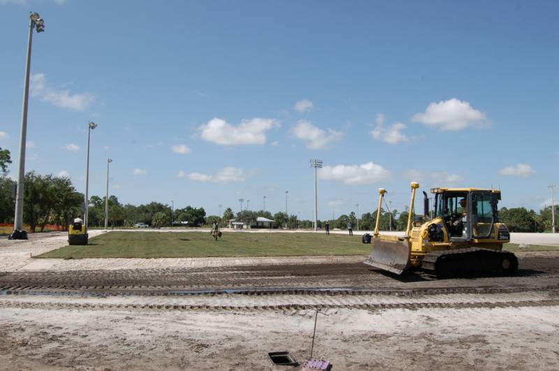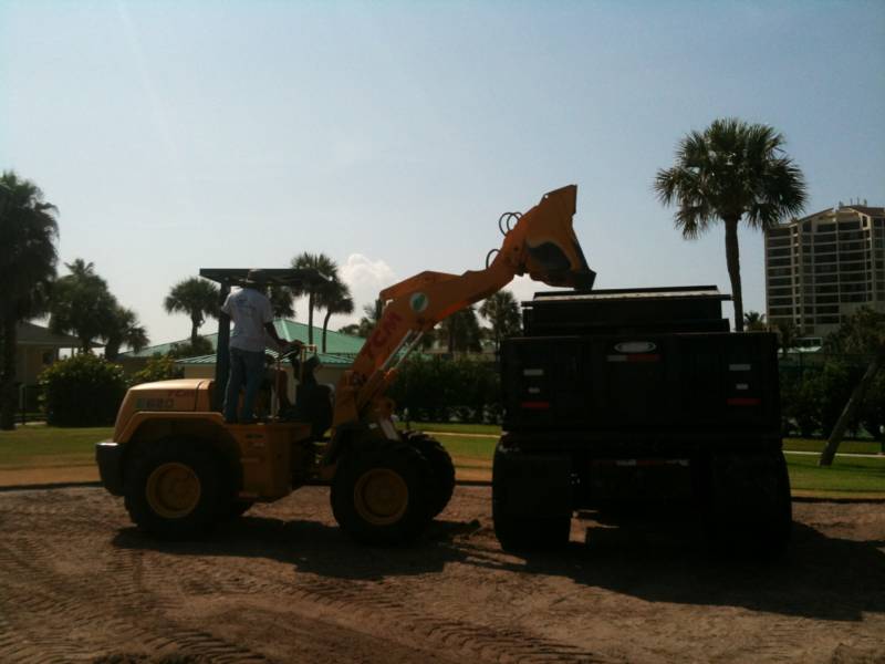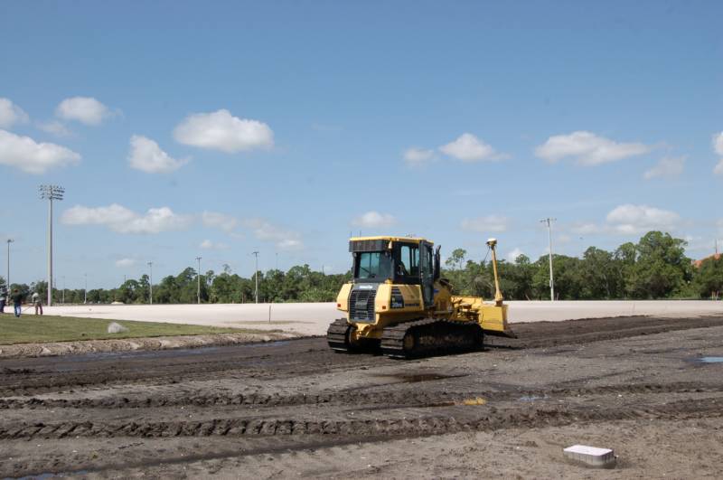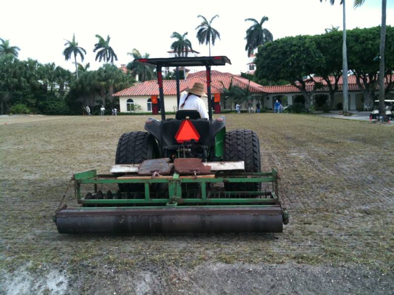 Everglades Club in Palm Beach, Florida. Along with the renovation's of the Driving Range Tee, which was lowered 5'. Utilizing the soil to create a 500' burm, new irrigation and re-locating of 300+ Palm Tree's. We also Strip, Laser Level and enlarge the Tee's surface then re-shape the Bunkers. The Driving Range and the Tee's will be SeaIsle I Paspalum and the Bunkers, Tifgrade Bermuda Turf.